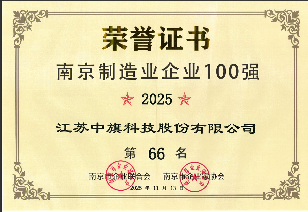 2025年11月13日,“南京市制造業(yè)百?gòu)?qiáng)企業(yè)”榜單正式發(fā)布,中旗股份憑借過(guò)去一年在經(jīng)營(yíng)業(yè)績(jī)、創(chuàng)新能力及綜合實(shí)力上的卓越表現(xiàn),再次成功入選,這是中旗股份自2019年連續(xù)7年入選。